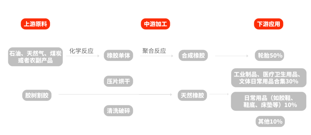 无论是天然橡胶还是合成橡胶,最终消费都是轮胎制造、胶管、胶带等橡胶制品。