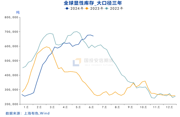 答:国内社库去库进入第三周,SMM口径铜库存从44.21万吨流出到38.66万吨。铜价跌破8万整数关后,前期停滞的消费有所改善,且沪铜整体持仓降至51.8万手。不过,即将有国内供应端缩量持续支持的社库拐点趋势,暂难提振铜价。一方面,5月国内精铜出口量兑现了73860吨,伦铜库存正在抬升,从全球显性总库存角度抵消了大部分国内社库流出的影响,6月伦铜库存增加5万余吨。另一方面,消费转入淡季,下游在价格下行后逢低补回订单,市场主要关注电网投资高增速与实际体感差可能带来的滞后需求。同时,也很关心下半年的家电排产。而在新能源汽车、光伏用铜方面,因发达国家出口政策压制大,需求形势暂偏负面。
