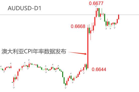CPI数据发布之前,市场人士还在预期澳大利亚会跟随加拿大央行的步伐开启首次降息。5月CPI发布之后,降息预期大受冲击,导致AUDUSD短线剧烈上涨。9:30(数据发布时点)开始,AUDUSD从低点0.6644飙涨至0.6668,涨幅24基点,与临近K线波幅形成鲜明对比。35分钟之后(7根五分钟级别K线之后),AUDUSD达到阶段性高点0.6677,从起涨点算起,累计涨幅33基点。考虑到5月CPI数据对市场预期的冲击力较大,预计AUDUSD后市仍有可能延续涨势。
