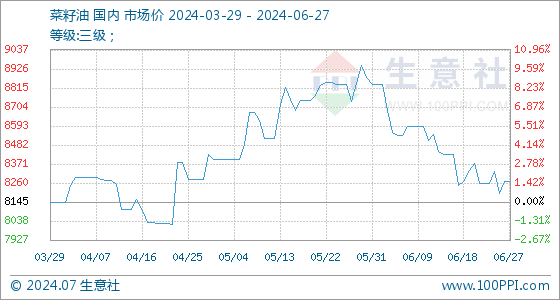 6月27日生意社菜籽油基准价为8271.67元/吨
