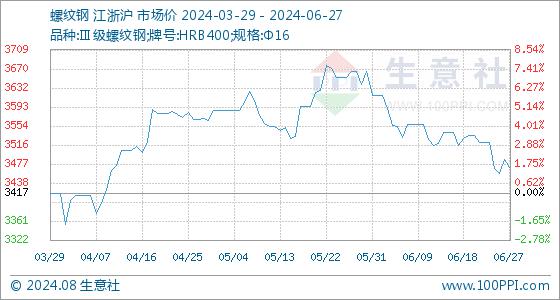 6月27日生意社螺纹钢基准价为3486.22元/吨