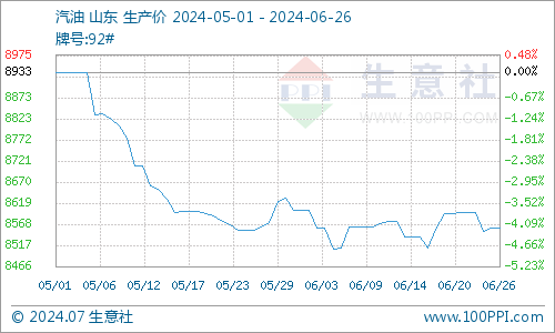 进入本轮计价周期,国际油价行情走势上涨,截止26日,美国WTI原油期货主力合约结算价报80.90美元/桶,布伦特原油期货主力合约结算价报85.25美元/桶。本轮周期内原油走势上涨,一方面地缘局势紧张令供应风险再度浮出水面,供需局势利好油市。另一方面中国经济持续回升向好,加之北美用油旺季到来,强势支撑油价。多重利好因素影响国际油价走势上涨,原油变化率维持正值。截止27日,第十个工作日原油品种变化率为5.01%,对应汽油上调210元/吨,柴油上调200元/吨,折升价上涨92#0.16元,95#0.17元,0#0.17元。