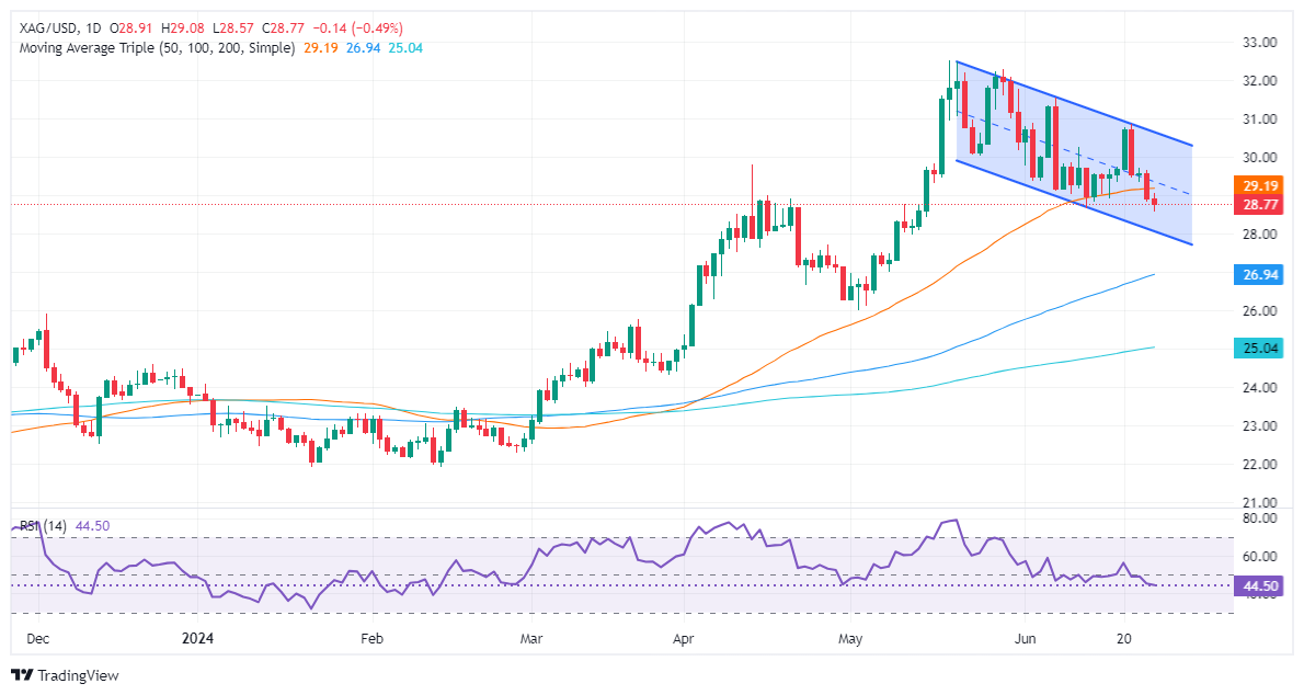 周三(6月26日),现货白银再度遭受打击,目前跌至28.70美元/盎司附近。FXStreet分析师Christian Borjon Valencia最新撰文,对银价技术前景进行分析。
