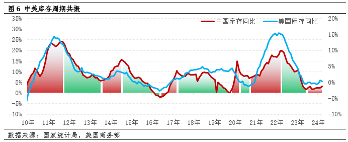 2024年上半年国内库存周期基本可以确定进入到主动补库存状态,另外影响2024年上半年价格的主要因素中还有美国及欧美库存周期前置的影响,中美库存周期共振共同驱动周期类商品趋势向上。进入到2024年之后美国有补库存的状态出现,因此形成中美周期共振,共同推动全球大宗商品价格趋势向上。