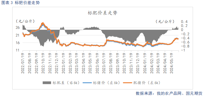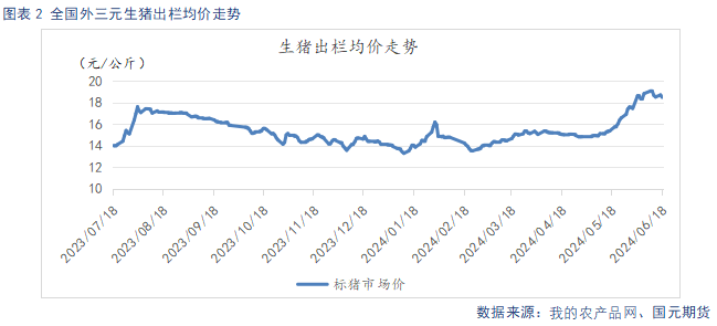 截止6月18日,生猪出栏均价18.47元/公斤,较上周环比下跌0.59元/公斤。标肥价差0.07元/公斤,较上周缩小0.09元/公斤。消费淡季,下游需求支撑不足,养殖端认价出栏增多,猪价高价回调。炎热天气下,肥猪需求转淡,近期标肥价差出现倒挂。