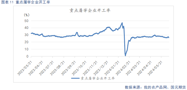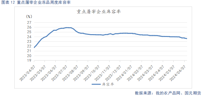 截止6月18日,重点屠宰企业日均开工率为23.76%,环比下降2.25%。冷冻肉库容率23.6%,较上周环比下降0.09%。猪价上涨速度过快,而高温天气下,下游需求跟进不足,白条走货不畅,屠企受成本和销售两端挤压,亏损压力较大,纷纷缩量,开工率持续下滑。