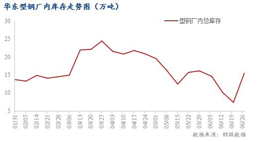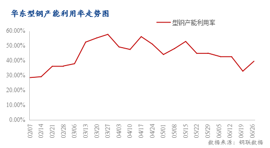 本周华东型钢产能利用率较上周环比上涨6.7%,库存较上周环比上涨30%。