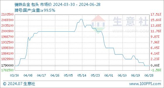 6月28日生意社镝铁合金基准价为1790000.00元/吨