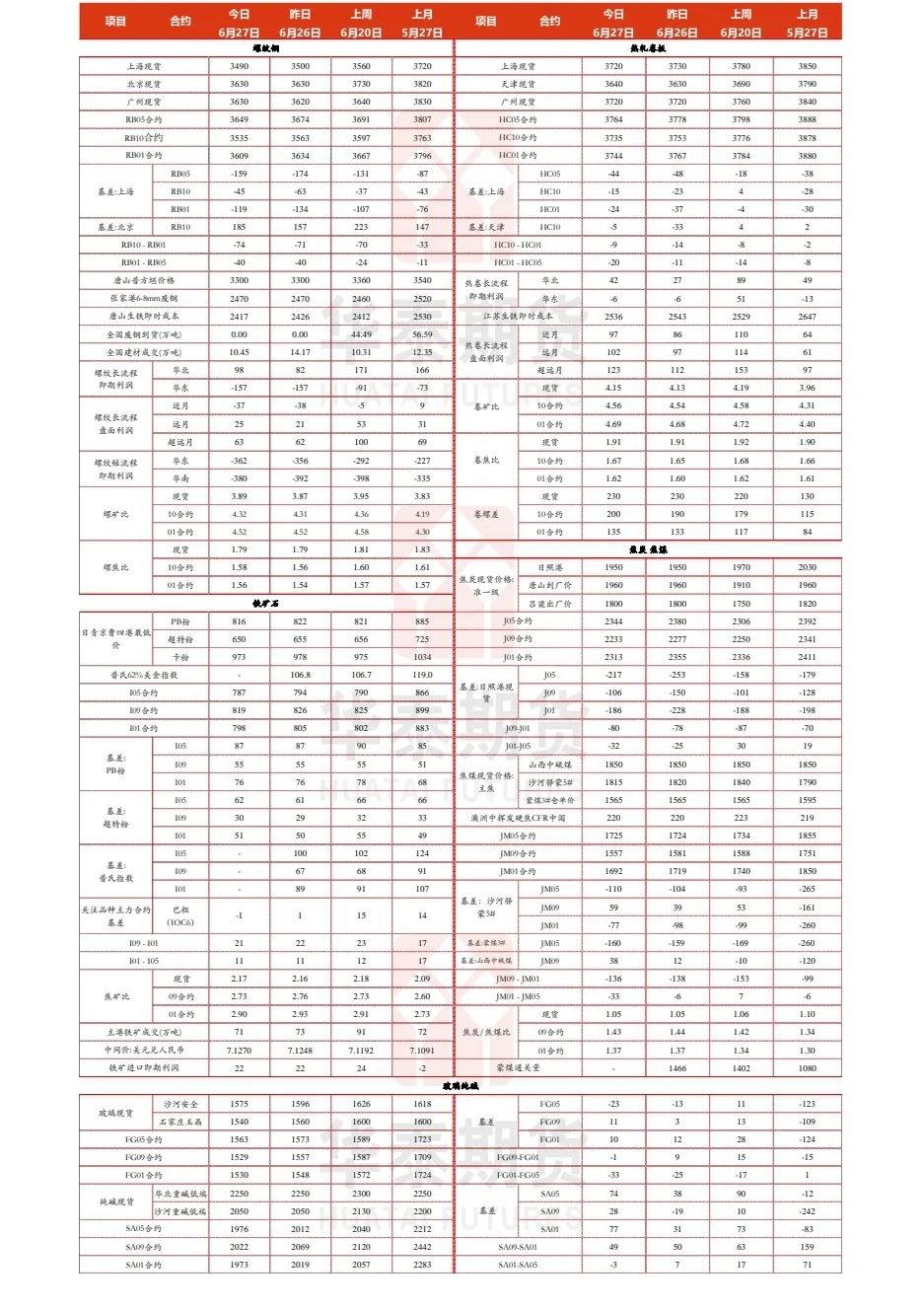 昨日,钢联公布了本周钢材产销存情况,数据显示五大材整体产量库存周度环比均有增长,消费仍弱于上周,午后钢价开始回落。至收盘,螺纹主力合约收于3535元/吨,较前日下跌28元/吨,降幅0.79%;热卷主力合约收于3735元/吨,较前日下跌18元/吨,降幅0.48%。现货方面,受期货影响,昨日钢材现货成交偏弱,不同地区螺纹、热卷均有10-30元/吨不等的涨跌。昨日全国建材成交10万吨,较前日下降4万吨。
