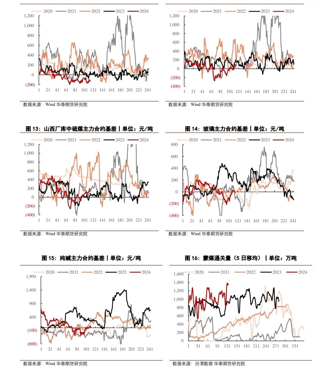 纯碱方面,昨日纯碱主力合约2409偏弱震荡收于2022元/吨,下跌19元/吨,跌幅0.93%。现货方面,据昨日隆众数据显示,本周纯碱开工率87.54%,环比减少1.91%,产量72.97万吨,环比减少2.14%,个别检修恢复不及预期,且个别企业小幅减量。厂家库存96.59万吨,环比增加7.74%,其中轻碱增加为主,需求持续下降。整体来看,个别厂家夏季检修带来了供给减量影响,大多数碱厂设备运行相对稳定,短期内价格下方支撑不足,维持震荡偏弱格局,由于年内的持续高产出,预计行业总库存将不断向上累积,从而不断向下压制纯碱利润,纯碱供给过剩的矛盾年内难以缓解。
