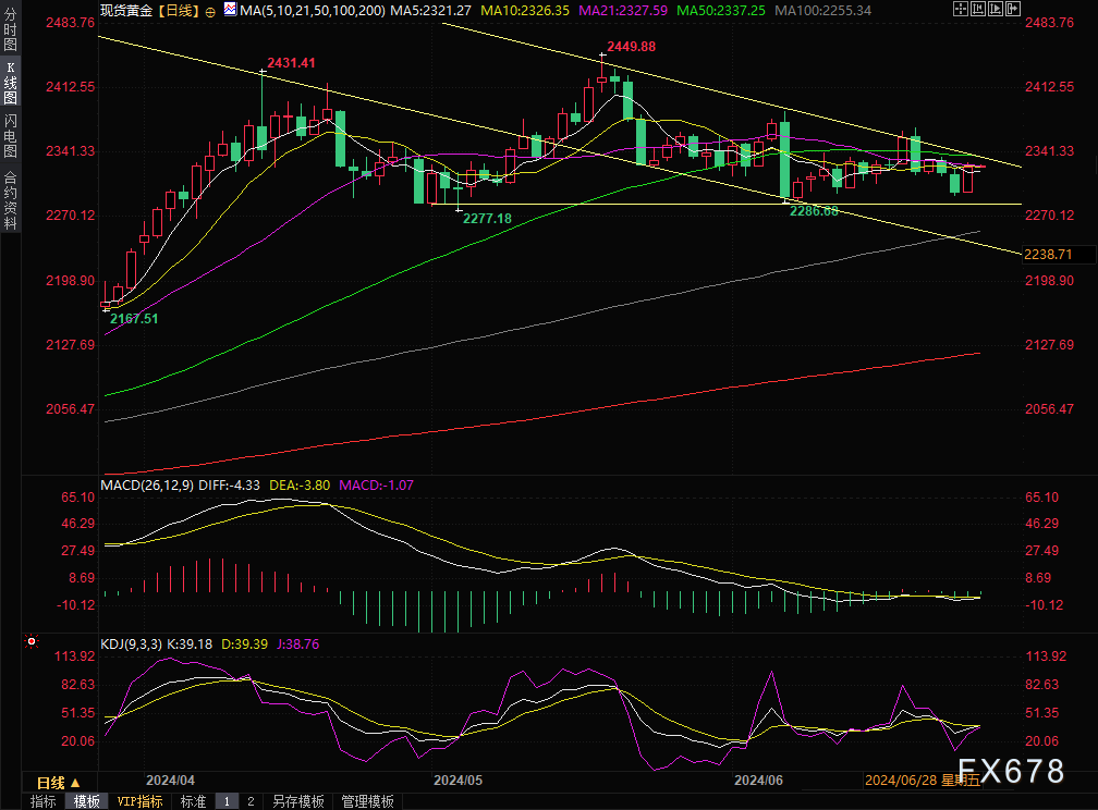 汇通财经APP讯——周五(6月28日)亚市早盘,现货黄金窄幅震荡,目前交投于2327.31美元/盎司附近。金价周四从上一交易日触及的逾两周低位上涨逾1%(或约30美元),收报2327.33美元/盎司,因美元走软,市场焦点转向关键的美国通胀数据,以寻找有关美联储政策路径的线索。