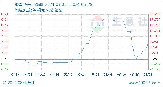 6月28日生意社鸡蛋基准价为7.40元/公斤