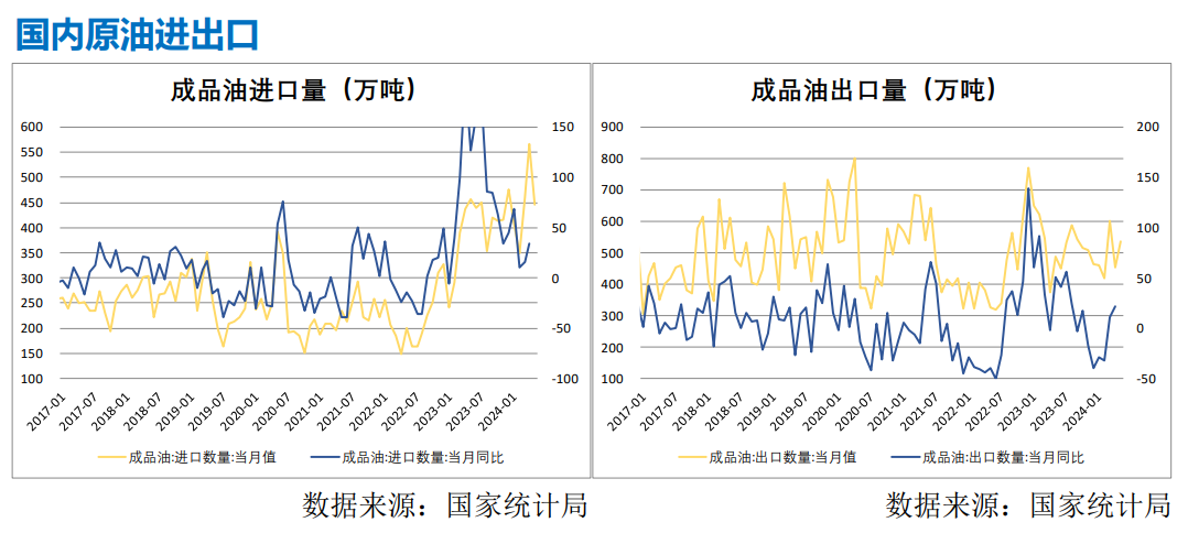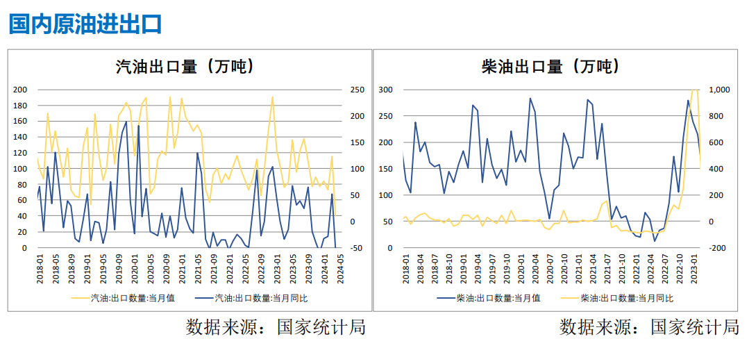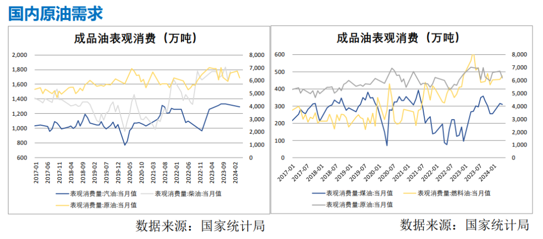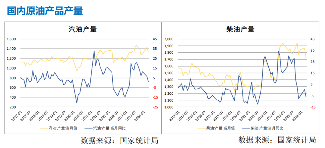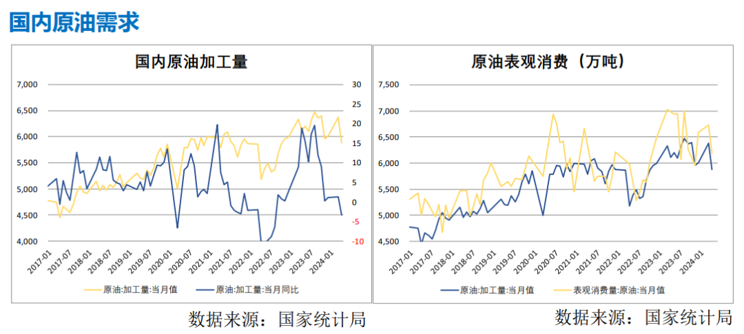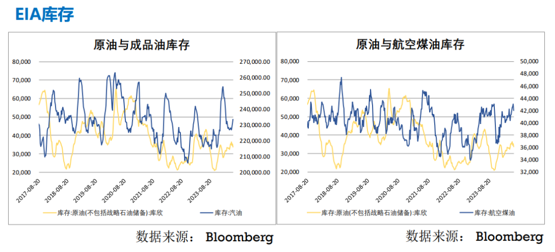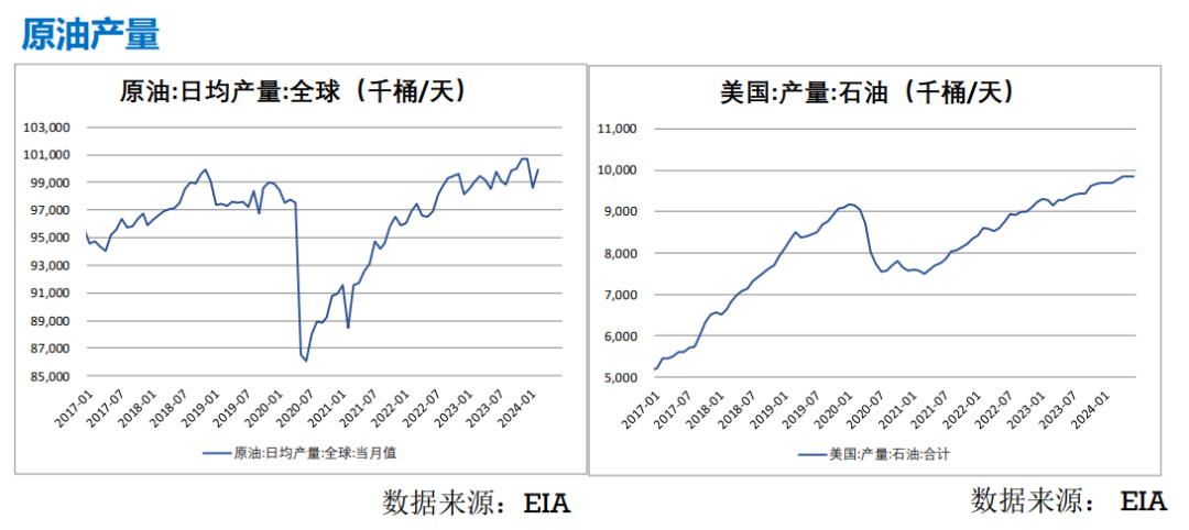 需求 | 偏空 | 夏季是出行旺季,当前汽油去库趋势较好,需求有所提振 IEA月报:石油需求增长将由亚洲经济体主导,尤其是印度的公路运输和中国的航空燃料和石化产品。 全球石油需求将在2029年达到峰值,为每日1.056亿桶,并在2030年略微收缩。 到2030年,发达经济体的石油需求将从2023年的近4600万桶/日降至不到4300万桶/日。 将2024年石油需求增长预测下调10万桶/日至96万桶/日。鉴于经济低迷和清洁能源技术的部署,到2025年石油需求增长将达到每日100万桶。 欧佩克月报:将2024年和2025年全球原油需求增速预期分别维持在225万桶/日和185万桶/日不变。 | |