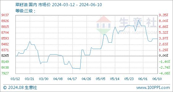 6月10日生意社菜籽油基准价为8588.33元/吨