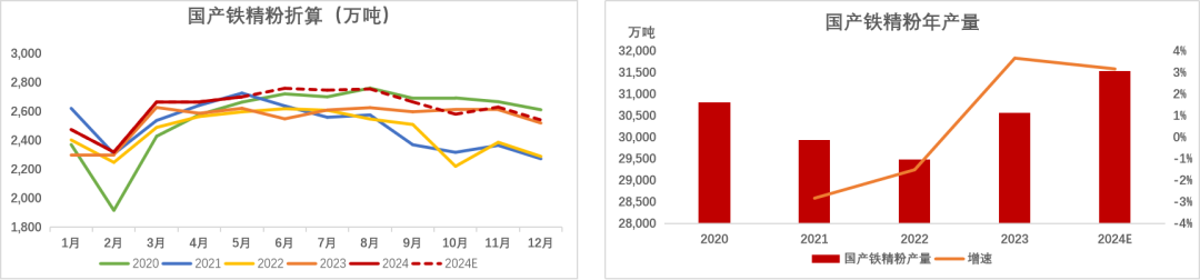 国产精粉同比增1000万吨(3.3%)至3.16亿吨。