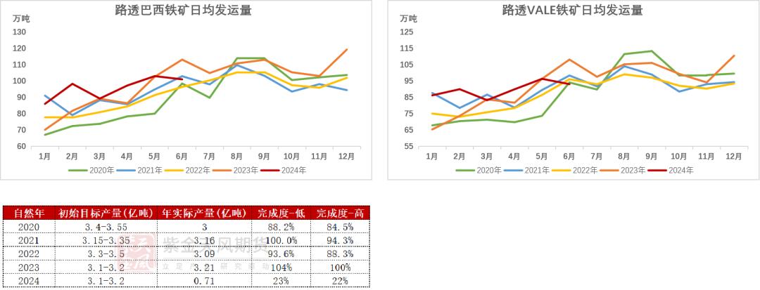 24年一季度VALE总产量7084万吨,同比增6%,增幅明显因为VALE对于矿区及铁路排水措施进行改善,降低了强降水对发运产生的影响。