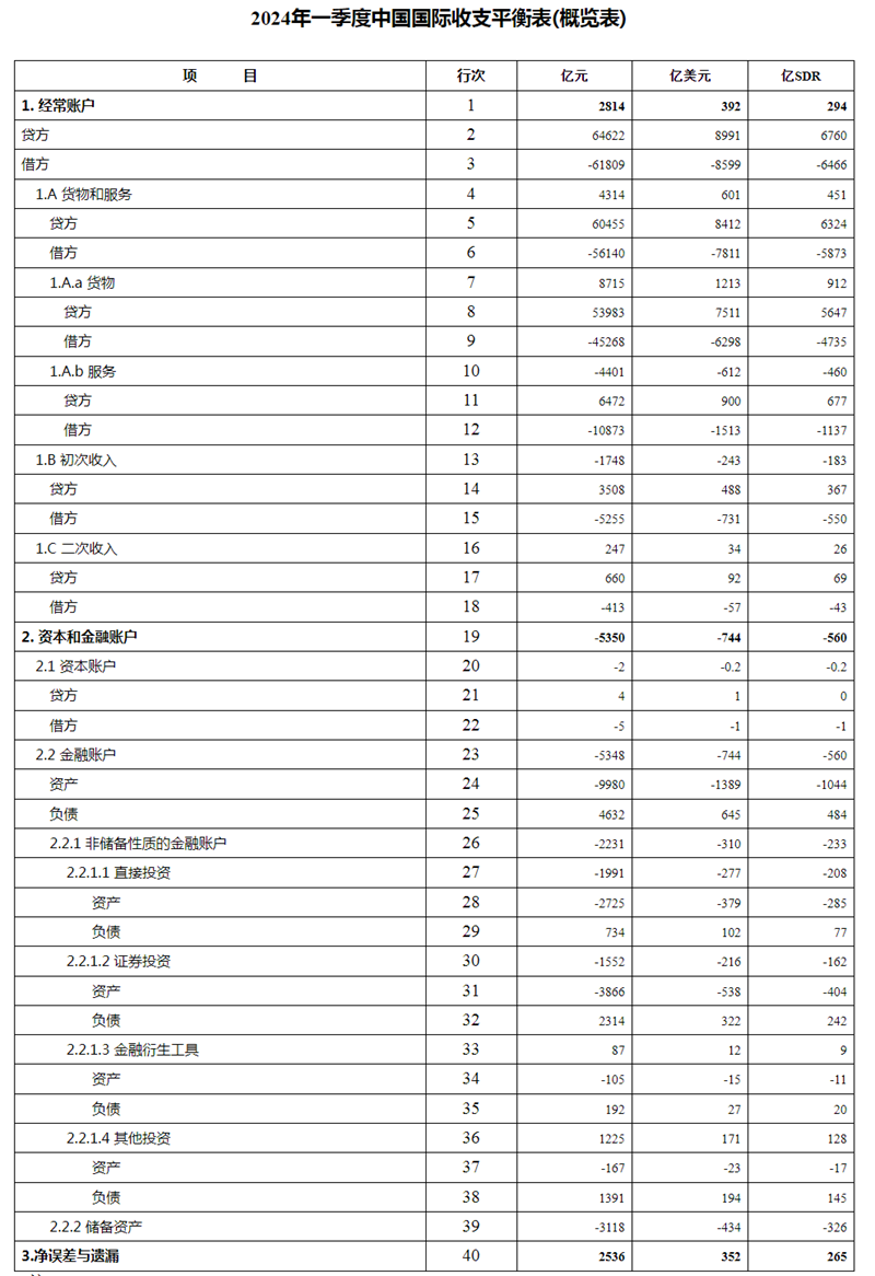 国家外汇管理局公布2024年一季度我国国际收支平衡表