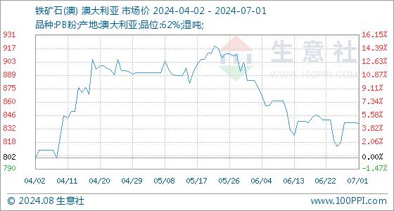 7月1日生意社铁矿石(澳)基准价为839.11元/吨