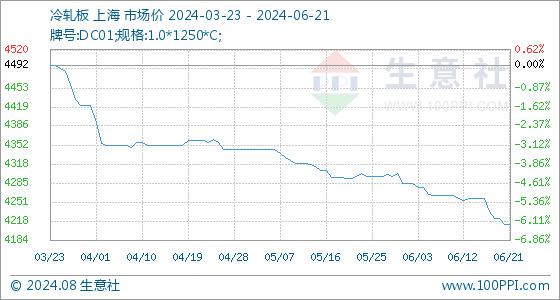 6月21日生意社冷轧板基准价为4212.50元/吨