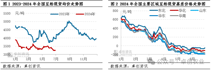 【导语】持续宽松的国内供需格局及暂无利好的国际供应端,对豆粕现货价格及现货基差价格均支撑较弱。进入7月上旬,供应端压力仍待消化,需求难有显著提振,卓创资讯预计豆粕现货价格及现货基差价格或表现弱势,上涨动力不足。