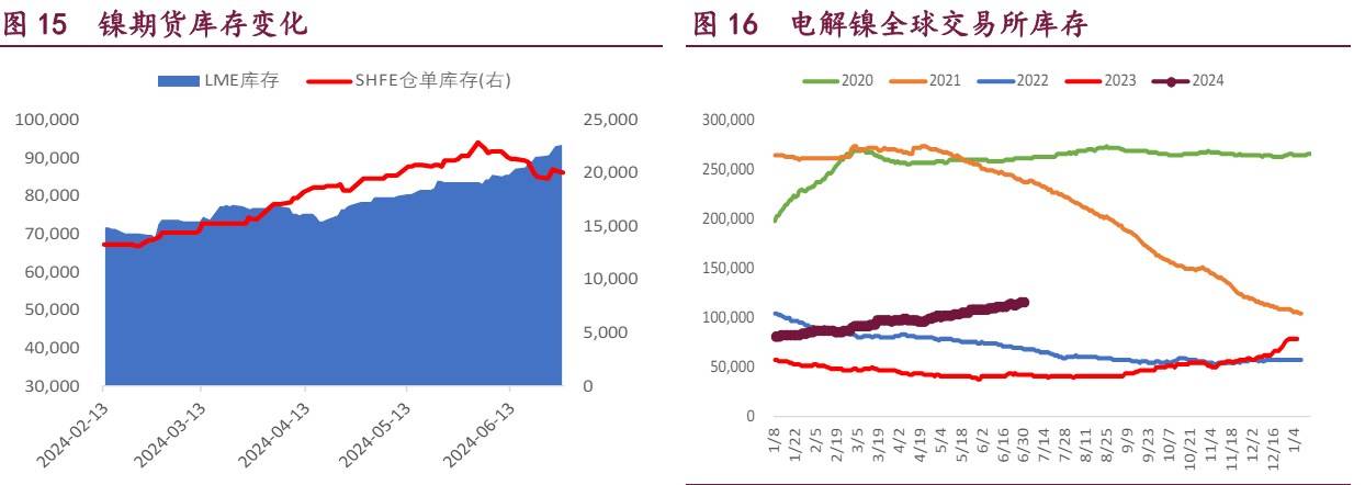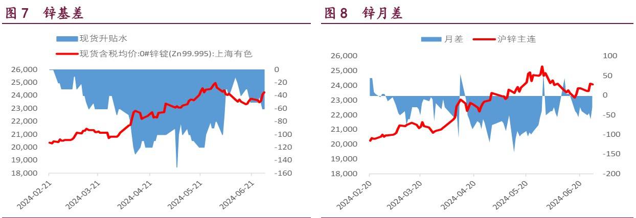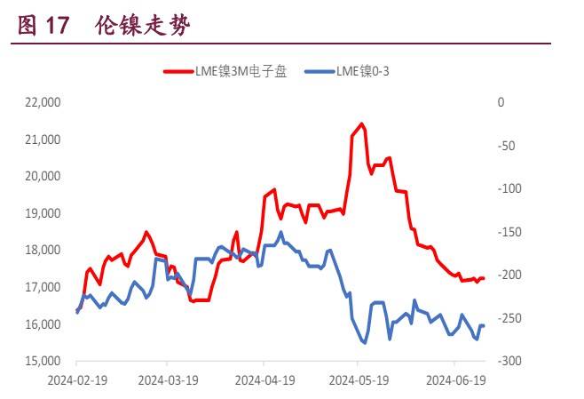 锌主力期价夜盘围绕 2.42 万一线震荡,日内增仓上行,一度冲击 2.5 万关口。产业层面,上游加工加工利润低,减产预期较强;下游 6 月以来需求回暖,镀锌板库存持续下降;国内库存高位持续去化,与往年同期水平相近,而全球层面去化并不明显,明显高于往年同期。近期锌在有色中表现强势,叠加日内期价增仓上行,可短多。