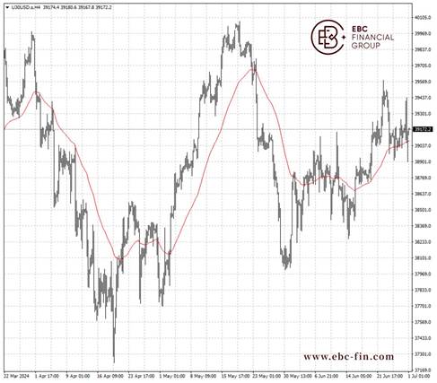 道琼斯指数在50日移动均线上方交投,因此在中期内维持向上格局。在再次冲向4万之前,指数先需要客克服阻力39600。