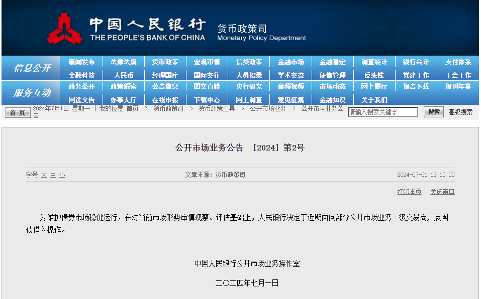 今日午间,人民银行发布消息称,为维护债券市场稳健运行,在对当前市场形势审慎观察、评估基础上,决定于近期面向部分公开市场业务一级交易商开展国债借入操作。这一消息犹如一枚石子投入平静的水面,瞬间引发了市场的剧烈波动。