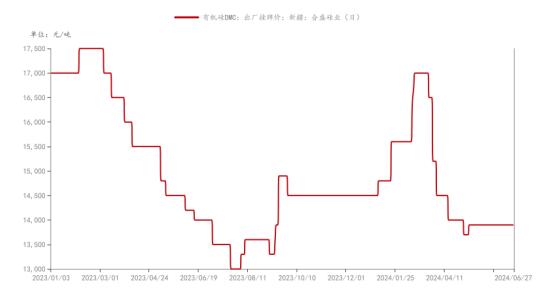 本月有机硅价格处于低位区间震荡,波动较小,头部企业出厂价已有一个多月不变,其中DMC价格维持在13900元/吨,107胶出厂价为13700元/吨,生胶价格在14300元/吨。目前市场主流DMC价格维持在13500-13900元/吨,107胶市场出现挺价意愿,月内山东主力厂家价格最高至14000元/吨,最终稳定在13900元/吨附近,目前厂家仍以消化预售订单为主。整体上看,有机硅下游大部分与地产相关,五月出现短暂刺激行情,但目前地产行业实际表现未有明显起色,需求增量有限,在供需压力下,仍将以维稳运行为主。