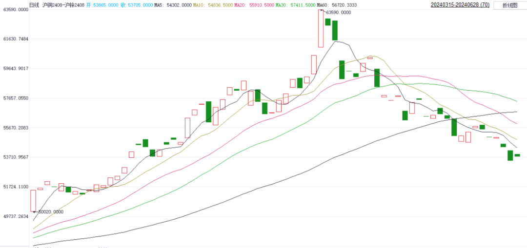 近期美联储官员再度释放鹰派言论,重申美国通胀存在上行风险,预计美联储可能把降息的时间推迟至2025年。近期,美元保持偏强态势,铜价再度承压回落。从近期市场表现来看,短期沪铜反弹力道不足,预计走势偏弱为主。全球锌矿紧缺,短期国内冶炼厂原料库存偏低,锌锭产量下滑,对锌价期价构成一定支撑。