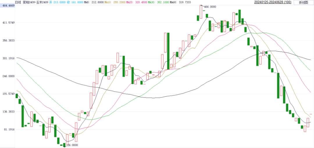 操作策略:空菜粕多玉米09,为跨品种套利策略,(该策略与下方的空豆粕多玉米09,任选其一进行关注。)