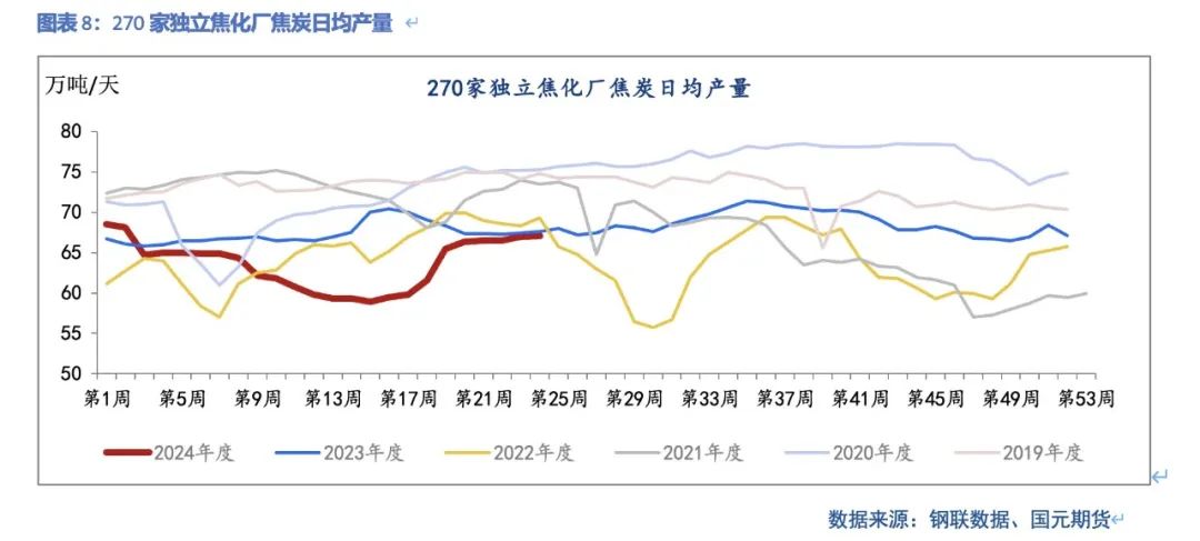 目前,独立焦化厂存在盈利,产量维持高位。上周,270家独立焦化厂焦炭日均产量为67.070.18%。247家钢厂焦化厂日均产量为47.08万吨,环比持平。