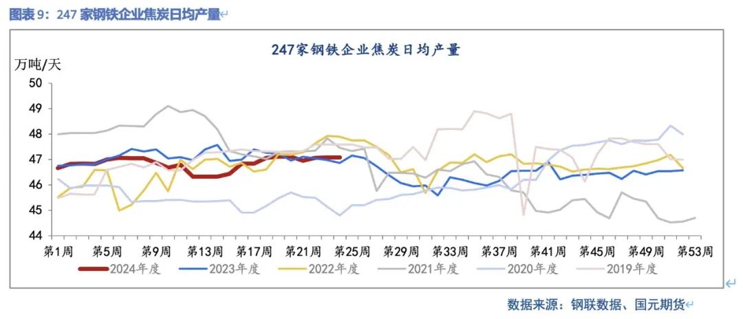 我们预测6月日均铁水大概率能维持在238万吨/天,双焦基本面处于紧平衡的局面中,价格下方空间有限。