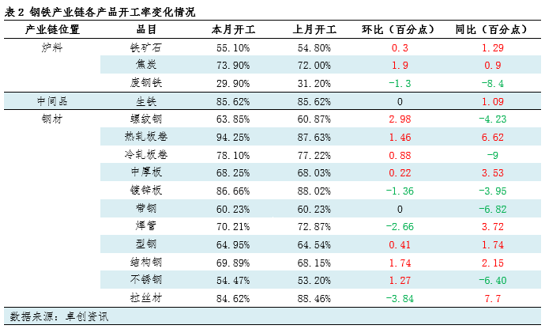 钢材上下游产业链开工负荷变化:主流产品窄幅波动