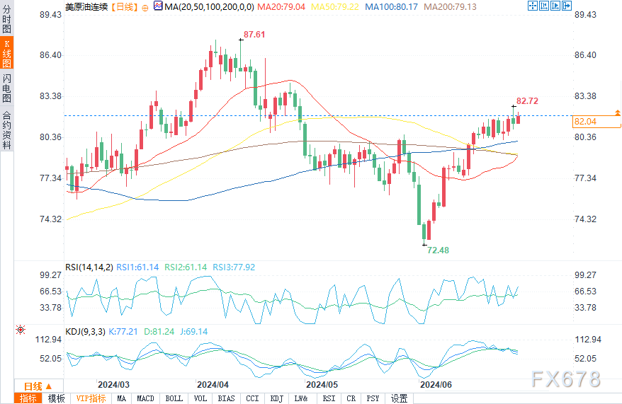 欧洲的地缘政治担忧以及以色列和黎巴嫩真主党之间的紧张关系为油价提供了支撑。此外,交易员们对美国联邦储备委员会降息抱有希望。如果西德克萨斯中质原油价格保持在200日移动均线79.52美元上方,近期的涨势可能会延伸至每桶85美元。
