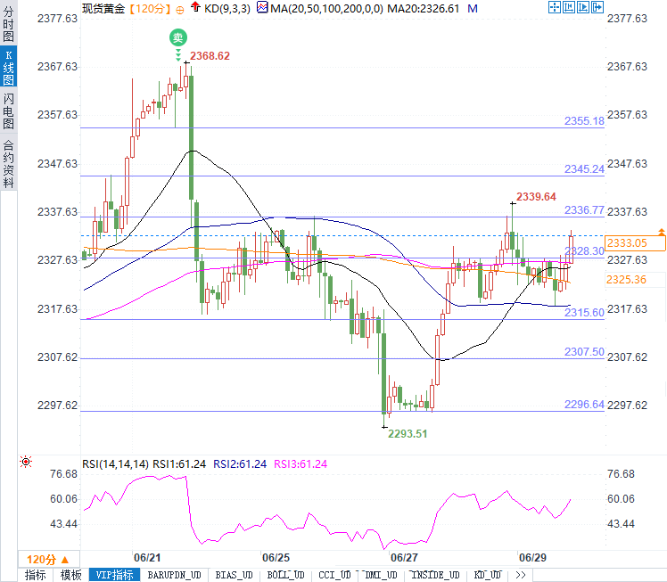 汇通财经APP讯——黄金在周一(7月1日)的交易日内展现出了其典型的避险魅力。尽管全球市场波动不定,黄金价格却表现出了相对的稳定。亚洲时段,金价在2325美元关口下方徘徊,显示出市场对即将到来的经济数据和政策决议的谨慎态度。尽管上周五美国公布的通胀数据显示通胀有所降温,但市场对于美联储的降息预期并没有因此而大幅改变,这限制了金价的波动幅度。