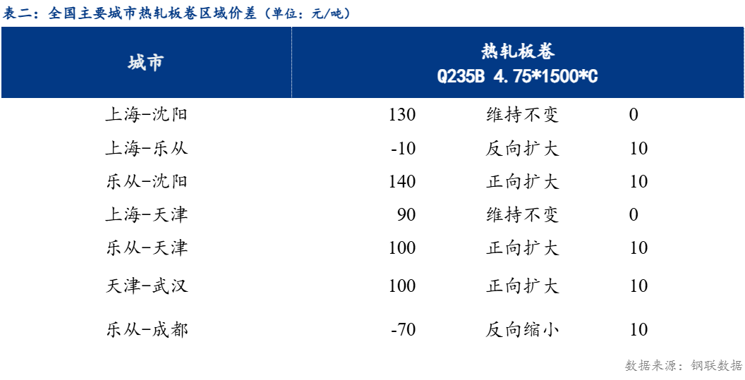 从区域价差来看,华东与东北价差130元/吨,较上一交易日维持不变;华东与华南价差-10元/吨,较上一交易日反向扩大;华南与华北价差为100元/吨,较上一交易日正向扩大10元/吨。
