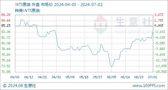 7月2日生意社WTI原油基准价为81.54美元/桶