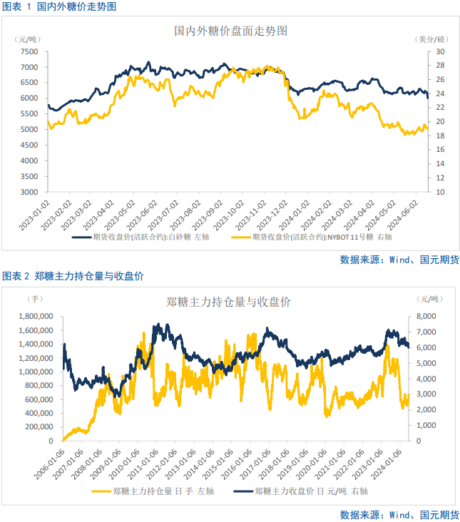 自4月25日郑糖主力期价触及6100元/吨一线实现阶段性探底之后,进行了为期近两个月的震荡盘整,其中郑糖期价盘面5月份的震荡反弹要强于外糖盘面,主要是受国内现货价格的支撑,而6月开始,郑糖期价盘面要明显弱于外盘,2024年6月18日,郑糖主力期价结束了为期近两个月在6100-6300元/吨震荡的态势,出现了破位下跌,突破了6100元/吨一线支撑,收盘6004点,空头增仓8.15万手,创2024年年内最大单日跌幅3.25%。