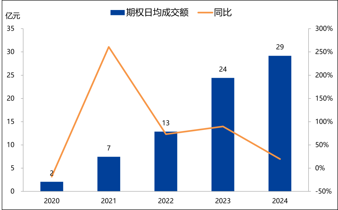 2024上半年活跃商品期权的日均成交额为29亿元,同比增长20%,增速达到2020年以来最低。