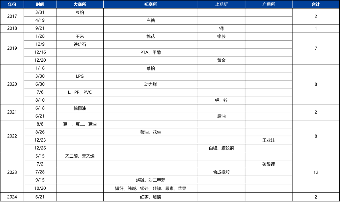 2024上半年新增红枣和玻璃两个商品期权,品种数量达到42个。下半年大商所的鸡蛋、玉米淀粉和生猪期权计划上市,上期所和广期所也有新增品种计划,年内商品期权数量有望接近50个。