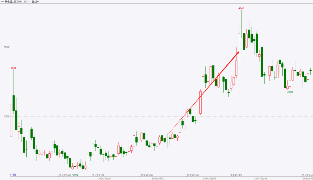 行情回顾:2024年上半年,氧化铝市场的基本面主要受到国产铝土矿复产预期落空的影响。由于铝土矿供应紧张,这一供需格局成为了氧化铝交易的核心逻辑,并且在短期内难以被证伪。这使得氧化铝价格在上半年呈现出相对强势的态势。期货市场上,氧化铝价格也呈现出相应的上涨趋势,吸引了大量资金的关注。然而,自5月底以来,受国内外宏观经济环境的不确定性增加以及有色金属市场整体回调的影响,氧化铝价格也跟随其他有色金属品种进入了回调期。尽管如此,氧化铝市场的基本面偏紧格局并未发生改变,这使得氧化铝在整体市场调整中表现出相对较强的抗跌性。