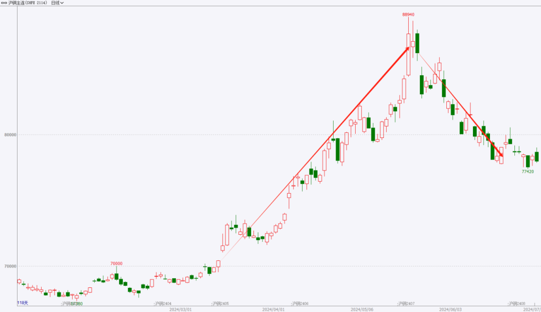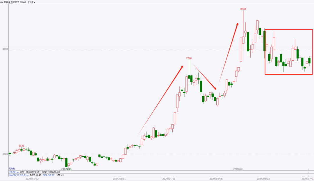 行情回顾:2024年初,受全球经济增长放缓预期的影响,天然橡胶的需求端表现疲软。汽车、轮胎等下游行业的增长速度放缓,导致库存积压,期货价格也一度出现下滑。然而,随着东南亚主产区进入停割期,供应端压力逐渐减轻,市场对于未来供应紧张的预期开始升温。进入二季度,随着国内宏观政策的调整,市场信心得到提振,天然橡胶的需求端开始出现复苏迹象。同时,产区天气异常、病虫害等因素也对天然橡胶的产量造成了一定影响,进一步加剧了市场供应紧张的预期。这些因素共同推动天然橡胶期货价格触底反弹,并创下了年内新高。然而,在价格上涨的过程中,下游企业对高价的抵触情绪逐渐增强,采购积极性下降。同时,随着产区逐渐进入开割期,供应压力也开始逐渐增大。这些因素共同作用下,天然橡胶价格在创出新高后出现了回调。
