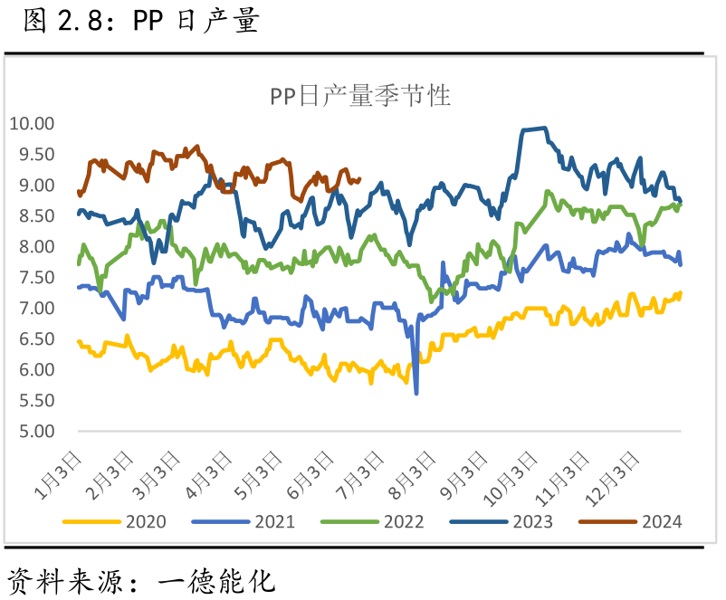 驱动角度,塑料下半年的投产增量在四季度甚至年底,09合约的压力主要是检修装置的恢复,而PP三四季度均有投产计划,供应端压力还是更明显一些。进口方面预计下半年有望增加,但幅度不大,主要是进口没有空间且内需没有明显亮点。需求端国内市场政策导向继续以促进消费为主,出口方面维持同比低增速的预估。产业库存季节性去化,但显性库存同比仍偏高,往年二季度末或三季度初会率先出现年内库存最低点,但目前距离低库存还有空间,后期关注是否会有预期差导致库存快速变化,若无则至少还要。
