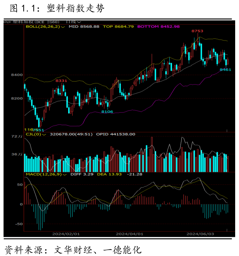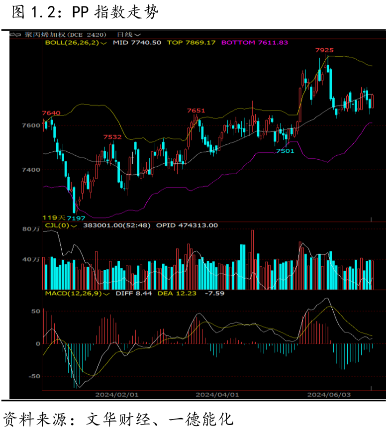 单边:塑料价格波动区间在7800-9200;PP价格波动区间在7200-8500。