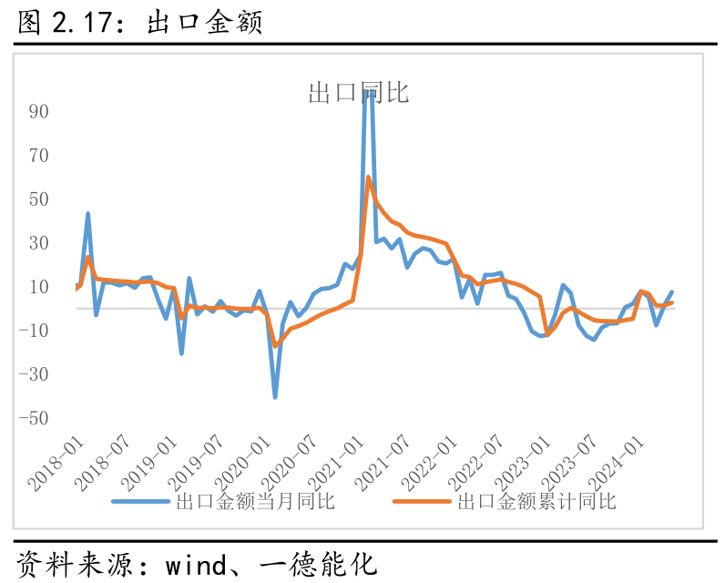 社消零售总额累计同比低于去年,国内政策继续助力消费,下半年传统旺季或比上半年强,出口数据短期稳定但长期仍不看好。