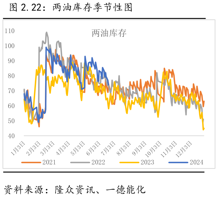 2.5 产业去库节奏缓慢,两油库存处于同期偏高