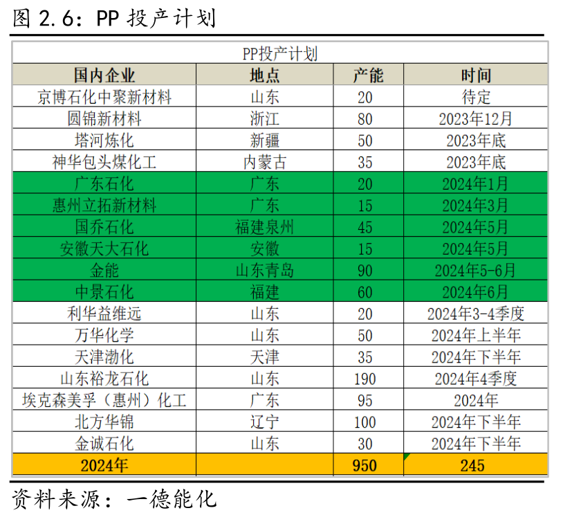 2.3 塑料投产增量在年底,PP下半年投产压力更大