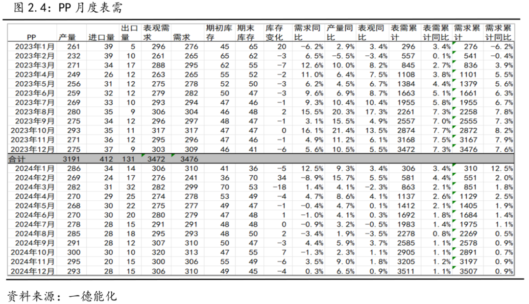 上半年塑料/PP累计表需增速分别为3%/2%,三季度检修装置陆续恢复,投产仍有增量,预计国内产量环比增加,进口增速下滑。