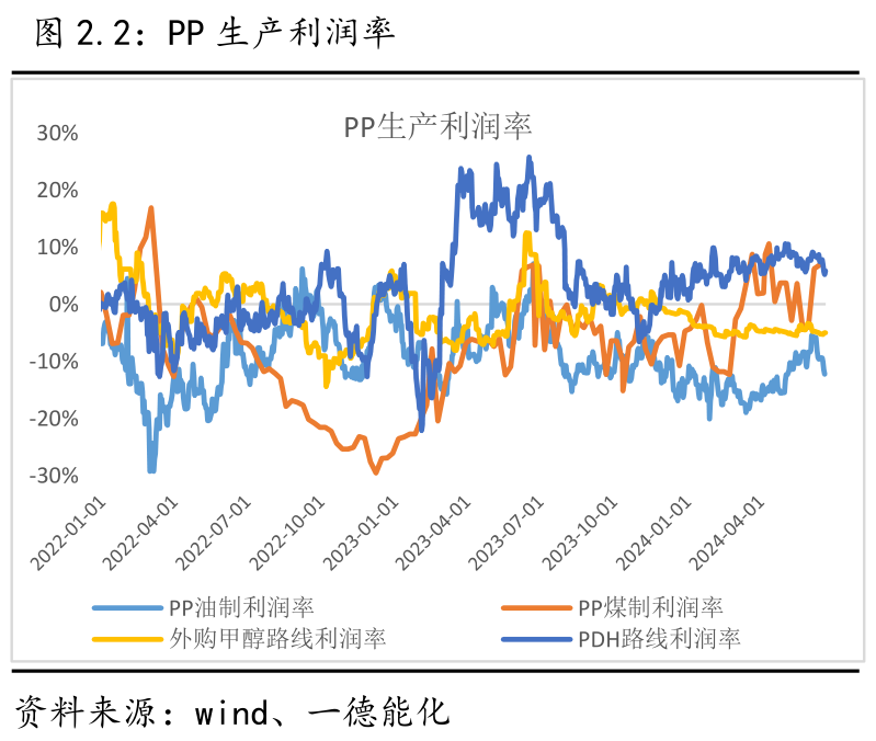 从上半年整体来看,聚烯烃各路线的利润率从高到低依次为:PDH路线>煤制路线>MTO路线>油制路线。