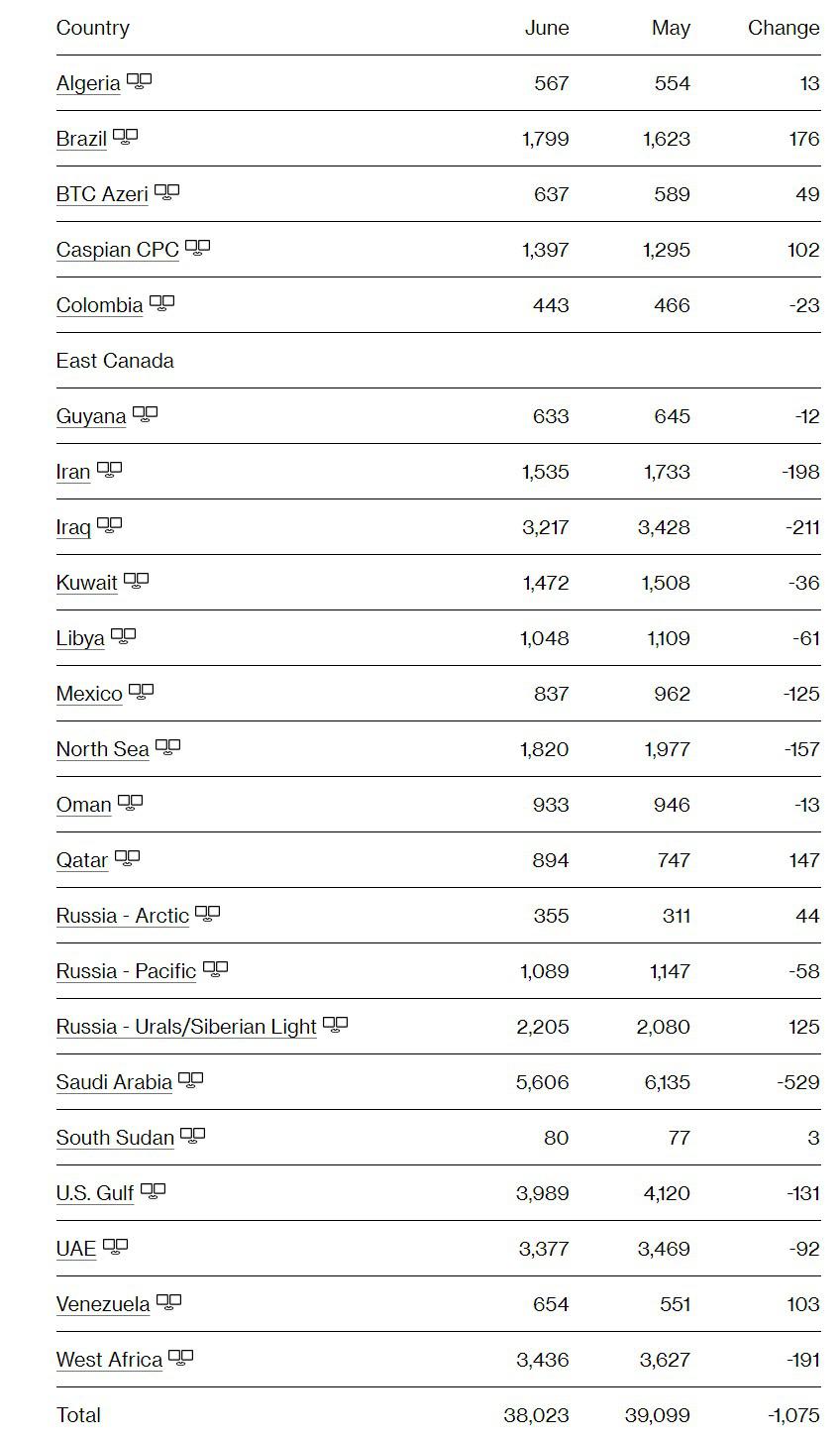 6月份沙特阿拉伯海运石油出口流量规模的大幅下降趋势,在一定程度上可能与欧佩克+减产协议以及沙特所坚持的额外减产策略有关。6月2日,欧佩克+已经正式同意将“自愿减产措施”延长至2024年底,将“集体性减产措施”延长至2025年结束。